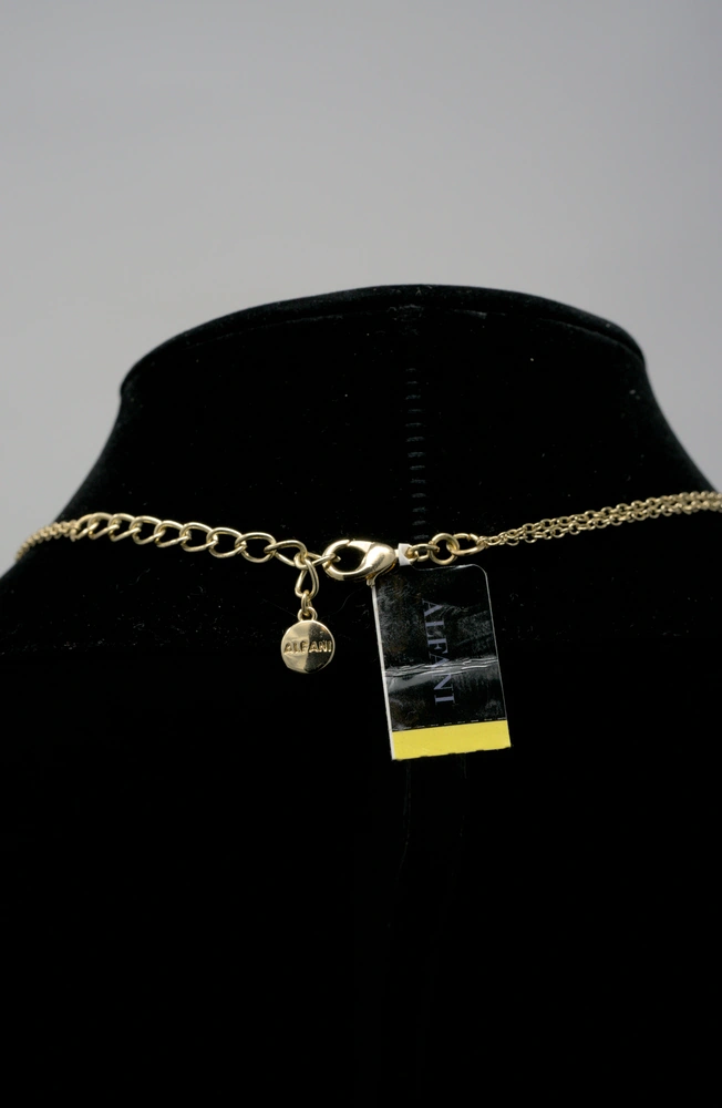 Crafted in gold-tone metal, the layered design creates dimension while maintaining a sleek, professional aesthetic. The adjustable 16-inch chain with extender allows you to customize the fit, making it ideal for pairing with a variety of necklines. Whether worn with tailored workwear or a chic evening ensemble, this necklace offers versatility and understated sophistication.