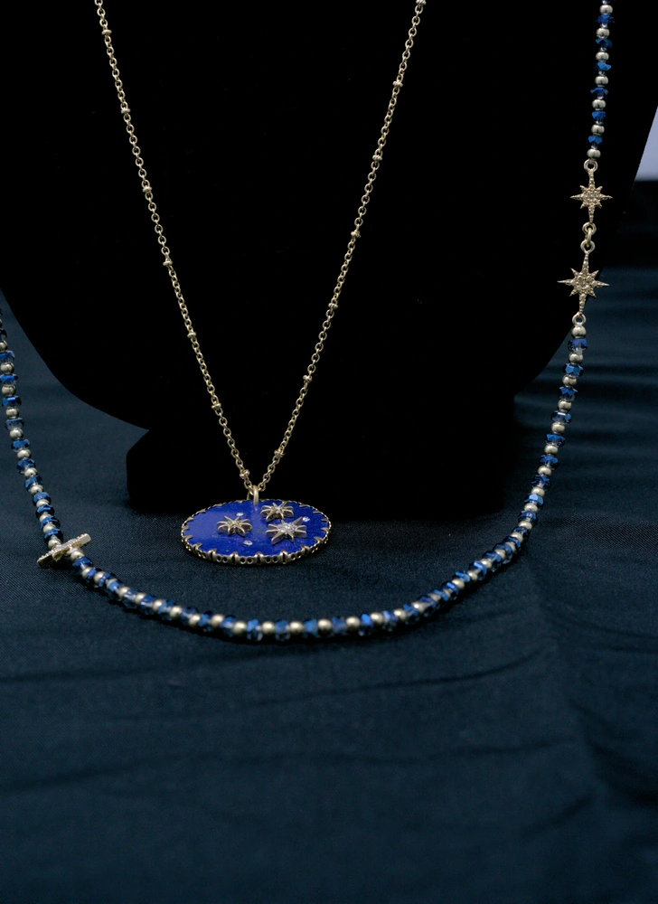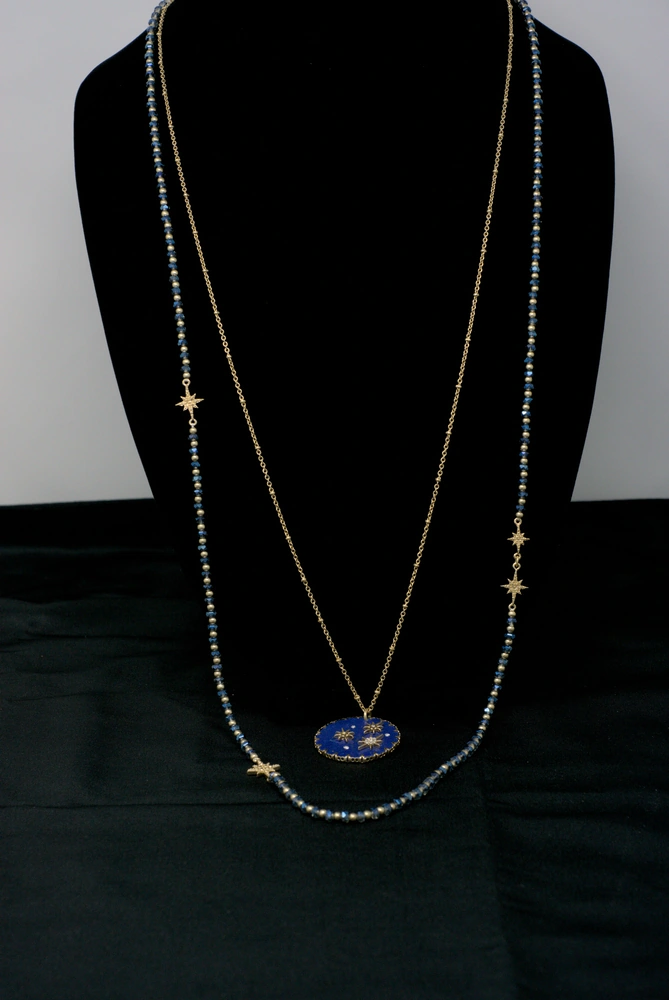 Be the first to review “Lonna & Lilly Gold-Tone Pave Star Navy Disc Double Long Layered Necklace”