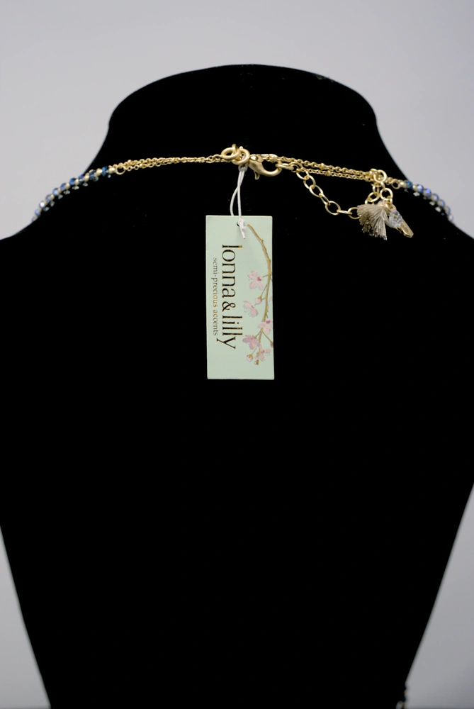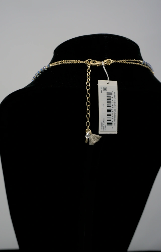 Crafted in mixed metal with glass and acetate details, the double long layered design creates natural dimension and movement. The extended length allows for easy styling over tops, sweaters, and dresses, while the extender provides adjustable comfort. Whether worn casually or styled for an elevated outfit, this necklace brings personality and polish to your jewelry collection.