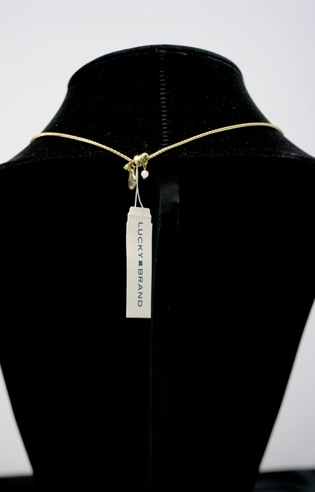A timeless symbol with everyday appeal. The Lucky Brand Gold-Tone Quatrefoil Pendant Necklace brings a relaxed yet refined touch to your jewelry collection. Designed with a classic quatrefoil pendant, this piece blends symbolic elegance with Lucky Brand’s signature casual aesthetic.