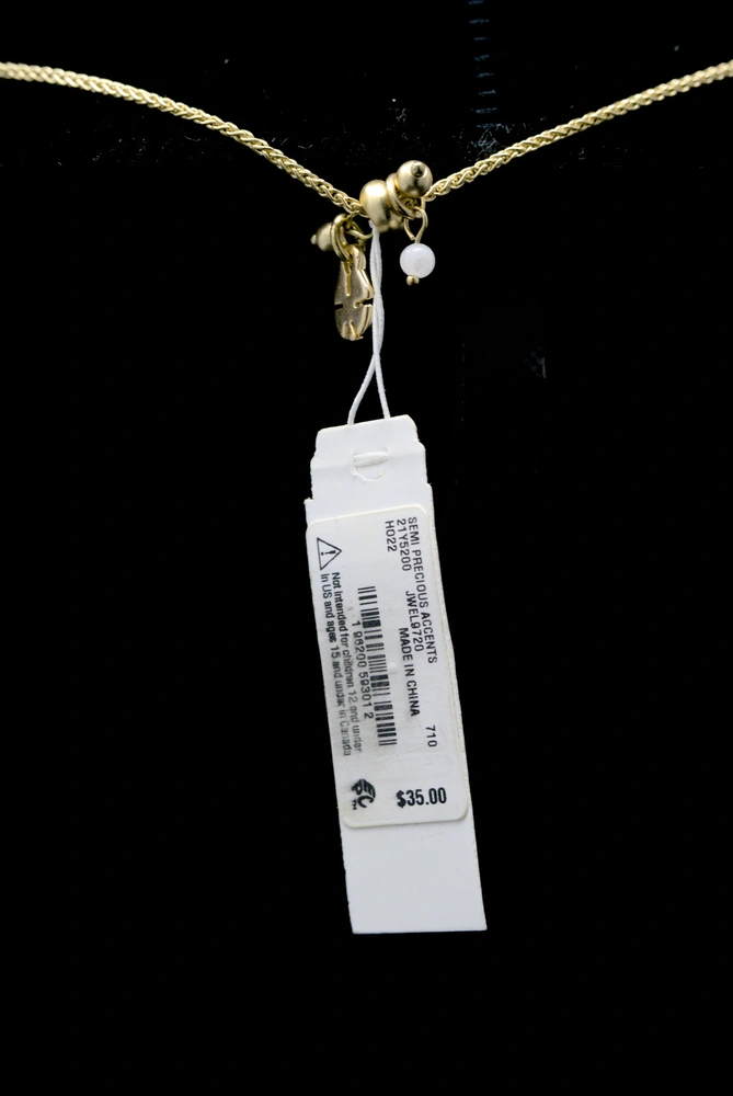 Crafted in gold-tone mixed metal and accented with glass, the pendant hangs from a long, adjustable 30-inch chain that allows you to customize the length to suit different necklines and layering styles. The 1-1/8-inch drop provides subtle movement, while the slide closure ensures a comfortable, secure fit. Versatile and easy to wear, this necklace transitions seamlessly from daytime looks to evening outfits.