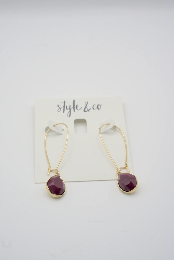 A subtle upgrade with a noticeable impact. The Style & Co Gold-Tone Maroon Stone Linear Drop Earrings are designed to bring refined simplicity and rich color to your everyday style. Featuring a sleek linear drop silhouette accented with a maroon resin stone, these earrings offer a polished look that feels both modern and timeless.