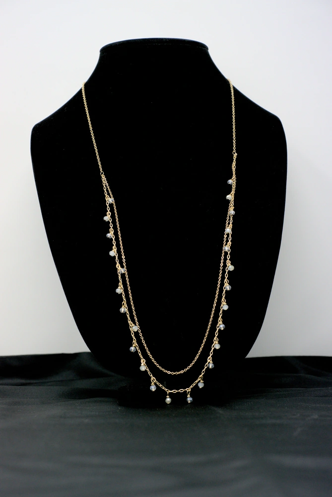 Set in gold-tone mixed metal, the double layered strands create a flattering drape that works beautifully with both casual and dressier outfits. The extended chain lengths allow comfortable wear, while the 1-inch frontal drop adds a refined focal point. Finished with a secure lobster clasp and extender, this necklace offers both versatility and ease of styling.